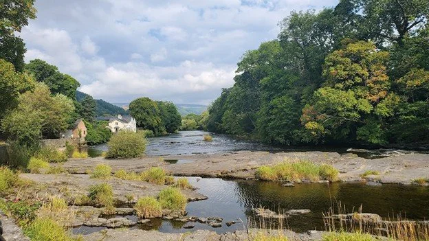 It was easy to feel the history of the place as we wandered around the scant ruins of the ancient castle and got a feel for the landscape around us and how strategic a location this was. Chris told us some history of a similar castle on the English side and how the Welsh and English fought for strategic points like this one in the Middle Ages. We had the option to hike into the town below and meet Chris there with the tour car or have him drive us into town. Since we had done a redeye and were still tired we opted for the latter. Chris told us that the hill that in which castell Dinas Bran sat is one of the legendary sites that is said to house the Holy Grail. It’s not very clear where this legend came from (or how the cup of Christ got all the way to Wales and somehow buried in a hill) but it was interesting folklore. I wouldn’t suggest digging at the hill looking for it, it’s probably illegal to dig around historic sites (and if its not it should be). The town of Llangollen (thl-an-goth-lan) is very pretty with the river Dee running through it. We had breakfast at a little place overlooking the river.