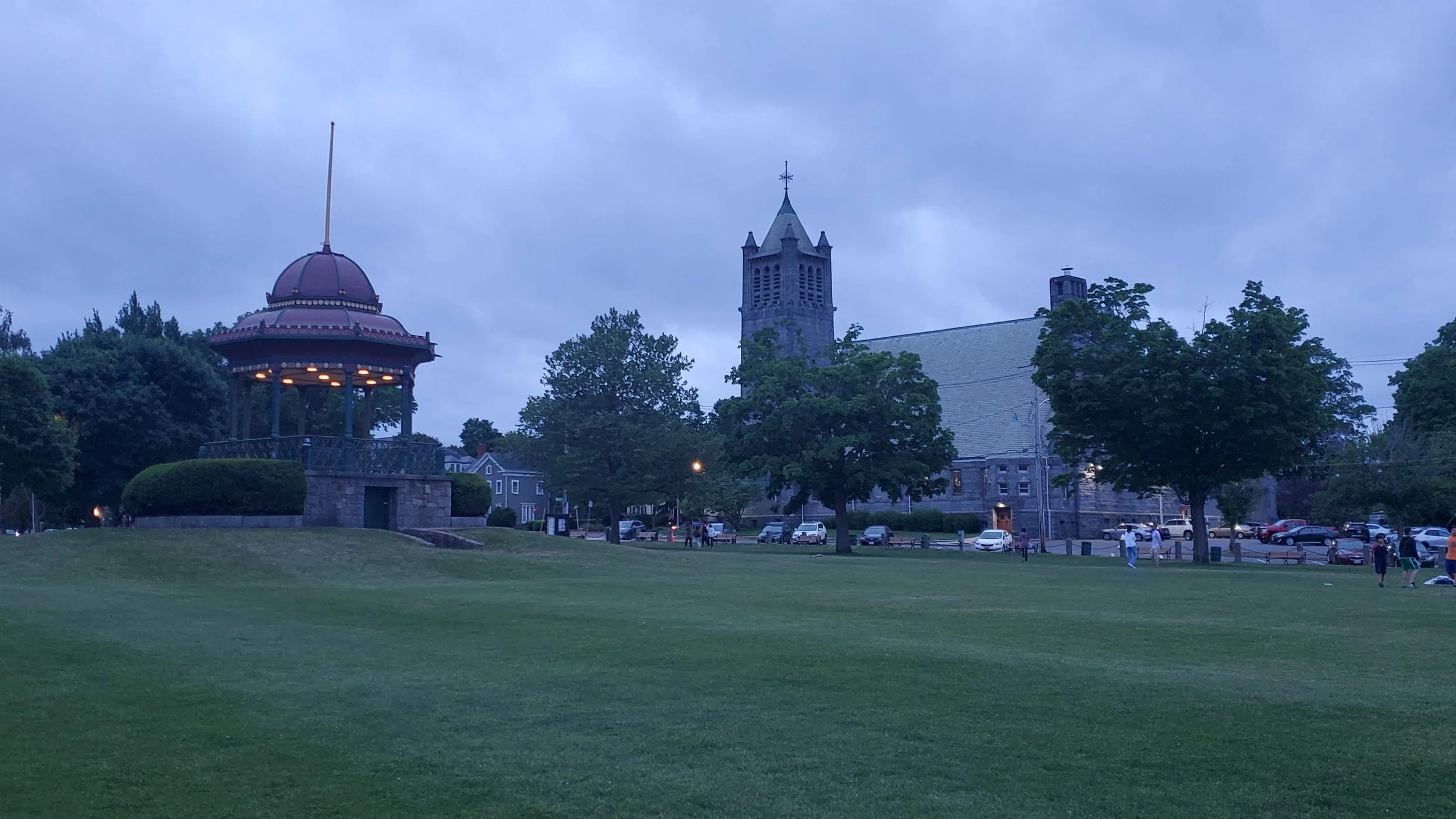 We loved the small museum, the otters and the hiking. Highly recommend this hidden gem. We went back to our Airbnb then went out for dinner near Wakefield MA. The place we ate at wasn't anything to write home about but was a perfectly fine diner. The rest of Wakefield was very impressive though. There was a beautiful stone church near a green park overlooking Lake Quannapowitt. There was also an Asian style pavilion. We hung out after dinner walking in the park then getting some ice cream up Common Street, past the old green common area with memorials. It was a great place to spend an evening. Charming small towns like this make Massachusetts, and New England in general, a fun place to explore. Wakefield Park in the evening. You have a neo-gothic church and the Asian style pavilion. The park was a lively place with people playing games and walking their dogs.