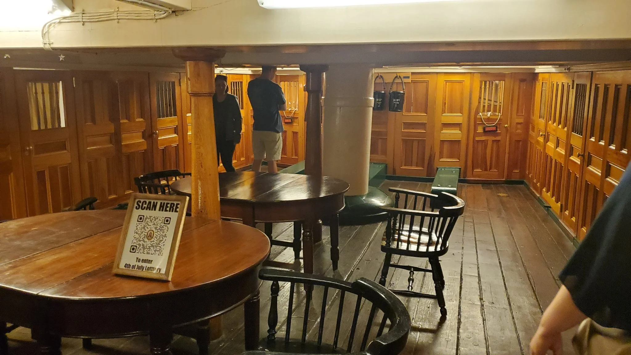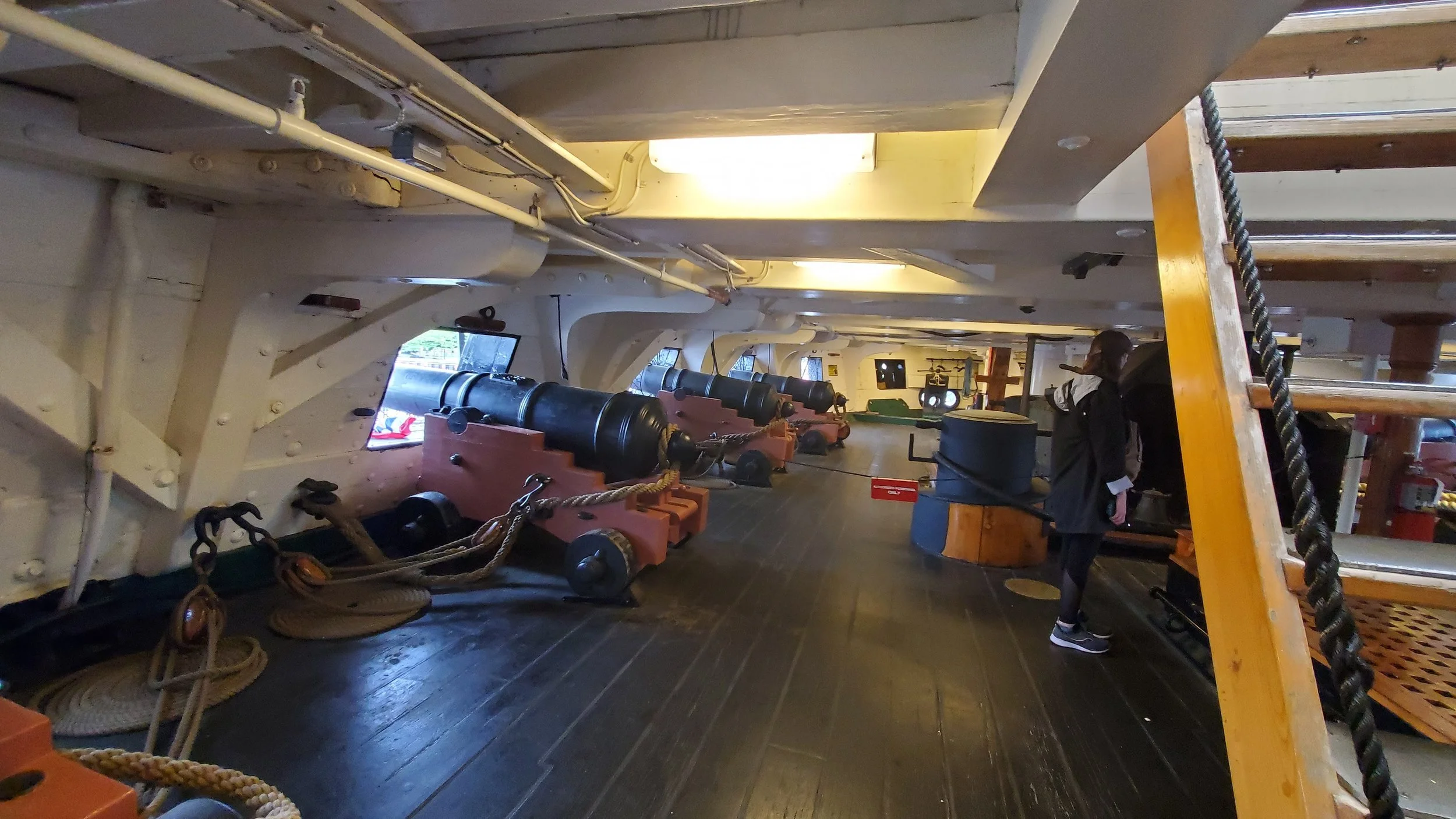 Above, this is the officer’s quarters. It looks like small jailcells but those were actually the rooms of the higher ups. This was more luxurious than the rest of the crew who just slept on hammocks in the gundeck. They also ate there too at their stations.