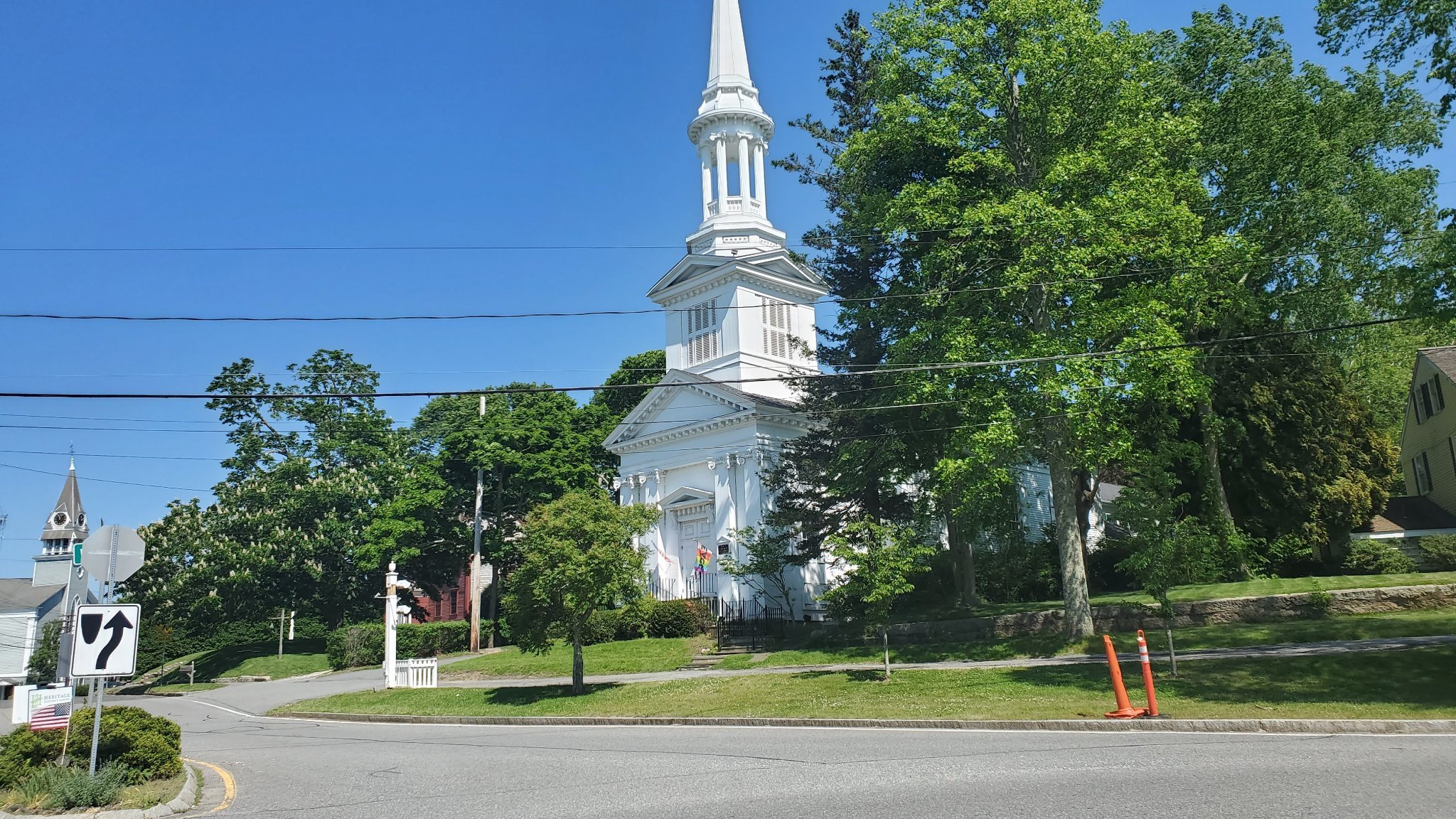 Day 0 we left work early and drove to our Airbnb. We planned this trip out to spend two days just north of Boston and two days in Cape Cod. This was May of 2022 so not super long after the pandemic, but I think this was the first trip where most restrictions were lifted. Hotels are a little expensive so looking at Airbnb's is a good option. Both Airbnb's we stayed at were extra rooms in houses; however they had their own entrance, and the houses were large enough that it didn't feel like we were staying with people we didn't know. The second Airbnb was a bit better because it was more of a private area, but the first one did have a backyard with a chicken coop so there is that. The first thing we did was go to Dedham, which was south of Boston, we took a highway that was a big arch around Boston missing crazy Boston traffic. Dedham is a classic New England colonial town, being founded in 1636 with a nice downtown and plenty of green spaces. We were there to see the Fairbanks House, the oldest timber frame house in New England and maybe America. What makes the Fairbanks House even more special is that is that they did dendrochronology on the structural timbers of the house showing scientifically that the house was constructed between Winter of 1637/8 (when the summer beam was felled) to Winter 1640/1 (when a joist beam was felled). This is the most accurate way to get a date for when a house was built, as many houses claim early dates but Fairbanks House as the science to back it up. The Fairbanks House requires you to book a tour at a certain time. We booked it for 10 AM, the earliest time. It was just us and one other group of a young lady with her kids. They were impressed when we told them that we were from New York as I guess they don't get a lot of people traveling far to see them. The outside of the house. The main blocky part is from 1640, the rest was added later.